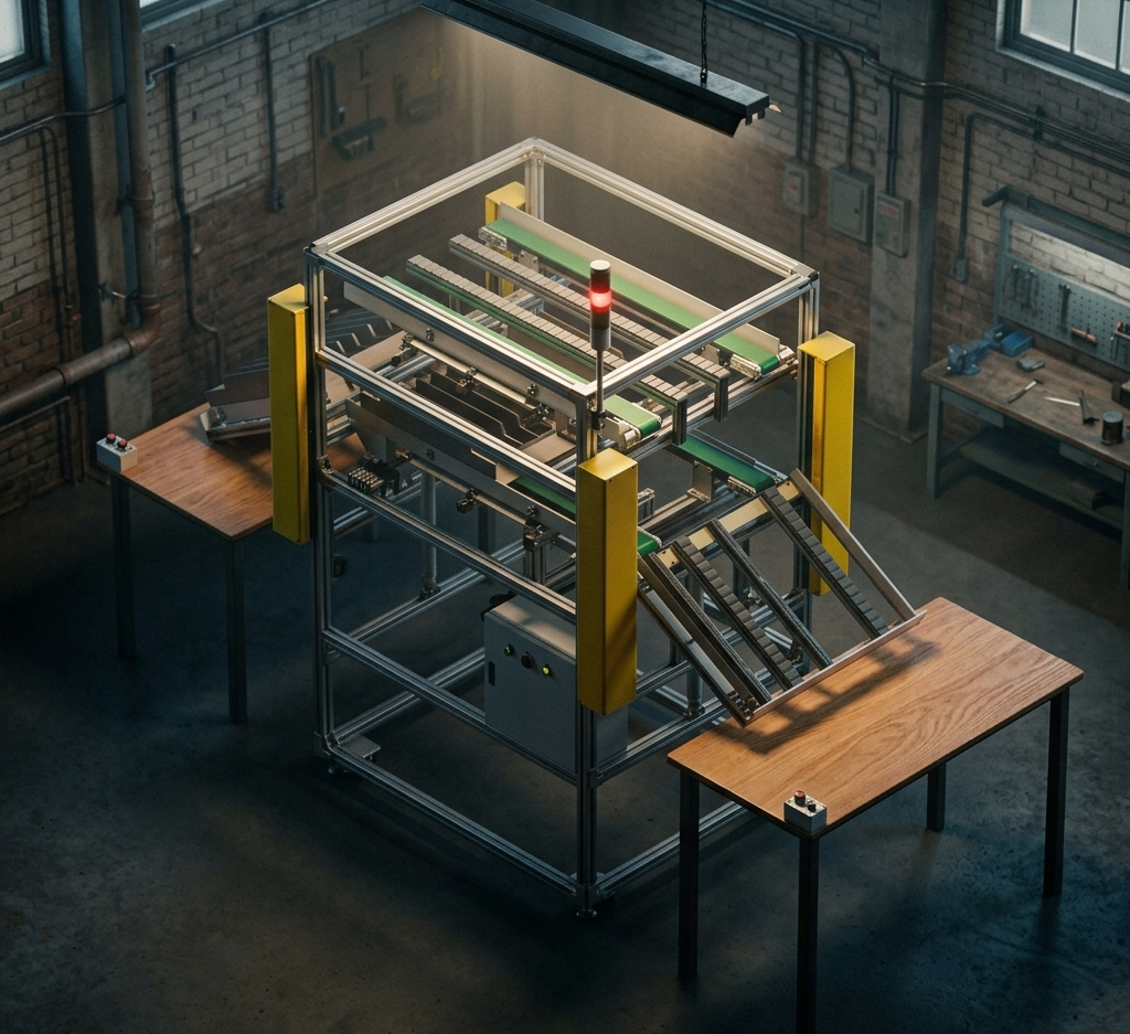 Hệ thống băng tải 2 tầng được thiết kế nhằm tối ưu hóa không gian nhà xưởng và tăng gấp đôi hiệu suất vận chuyển trong dây chuyền lắp ráp hoặc đóng gói. Với thiết kế khung nhôm định hình chắc chắn kết hợp cơ cấu nâng hạ khí nén, đây là giải pháp linh hoạt cho các nhà máy công nghiệp hiện đại.