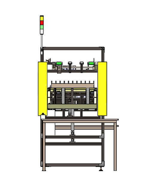 Cảm biến màn chắn sáng (Safety Light Curtains): Hai thanh vàng lớn bảo vệ an toàn tuyệt đối cho người vận hành.
